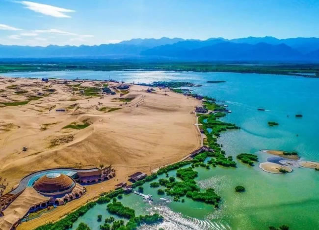 早餐后游覽國家 5A 級景區(qū)【沙湖旅游區(qū)】(含門票+大船,參觀約 2.5 小時),在這里,大漠金沙的豪放粗獷與碧湖葦蕩的恬靜秀美天然的融合在一起,構(gòu)成一派大漠水鄉(xiāng)的沙湖 奇觀,湖水、沙山、蘆葦、飛鳥、游魚、荷塘在毛烏素大漠之上,營造出中國絕無僅有的勝地。