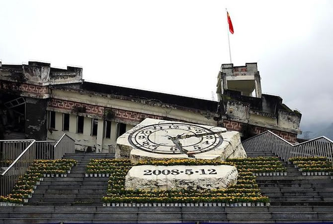 參觀拍照后前往漢旺地震遺址,在汶川地震中,綿竹遭受了巨大災(zāi)難,尤其是漢旺地區(qū)的沿山地區(qū)和山區(qū),房屋幾乎全部坍塌,基本完好的房屋僅占8%左右。地處漢旺的東方汽輪機(jī)廠損失慘重。后將其改建成遺址紀(jì)念區(qū),可看到綿竹漢旺鎮(zhèn)、沿山鄉(xiāng)村旅游地震遺址帶,世界最大板房臨時安置區(qū),在漢旺地震遺址區(qū)的“512紀(jì)念鐘”前見證歷史。